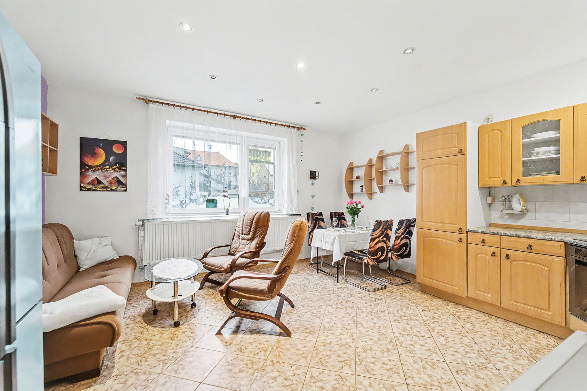 Dům je rozdělen do tří samostatných bytových jednotek a jednoho komerčního prostoru s vlastním vstupem z ulice. Díky tomuto uspořádání je nemovitost vhodná jak pro vícegenerační bydlení, tak pro investora hledajícího výnosovou nemovitost.