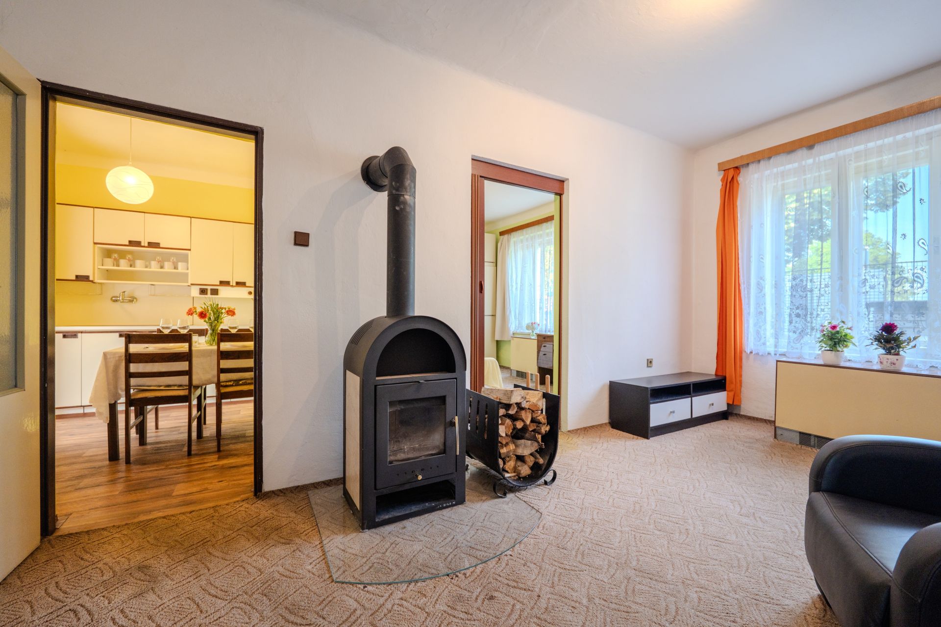 domu. Topení je zde řešeno akumulačními kamny.
