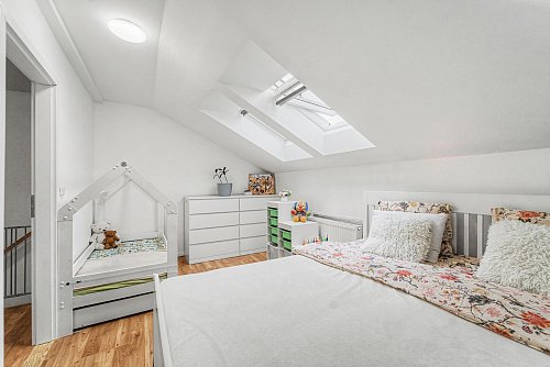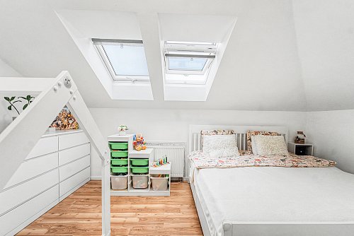 S potěšením vám představujeme elegantní mezonetový byt o dispozici 3+kk (předělaný na 4kk) s balkonem a podlahové ploše 70 m², situovaný ve 3. nadzemním podlaží bytového domu bez výtahu v klidné a vyhledávané části obce. Spodní patro nabízí komfortní ložnici se vstupem na balkon, který poskytuje příjemný prostor pro ranní kávu i večerní relax. Dále zde naleznete dětský pokoj, stylovou koupelnu s vanou, WC a prostorem pro pračku a praktickou komoru. Ložnice je vybavena kvalitní vestavěnou skříní, která podtrhuje funkčnost i čisté linie interiéru. Horní patro tvoří vzdušný obývací prostor s kuchyňským koutem a spíží, ideální pro rodinný život i společenská setkání a ložnici. Díky velkým oknům s izolačními dvojskly a žaluziemi, orientovaným do klidného vnitrobloku se zelení, působí byt svěže, světlé a velmi příjemně. O tepelný komfort se stará plynový kotel. K domu náleží rozsáhlé parkoviště s dostatkem parkovacích míst, což zajišťuje pohodlí pro rezidenty i návštěvy. Velkým benefitem je také bezprostřední blízkost dětského hřiště a Juventského lesa, který vybízí k procházkám, sportu i odpočinku v přírodě. Lokalita nabízí výbornou dostupnost veškeré občanské vybavenosti – v docházkové vzdálenosti se nachází nákupní zóna i železniční stanice. Milovice jsou navíc známé širokou nabídkou volnočasových aktivit, včetně oblíbeného parku Mirakulum. Tento byt je ideální volbou pro ty, kteří hledají kombinaci klidného bydlení, moderního prostoru a komfortu.